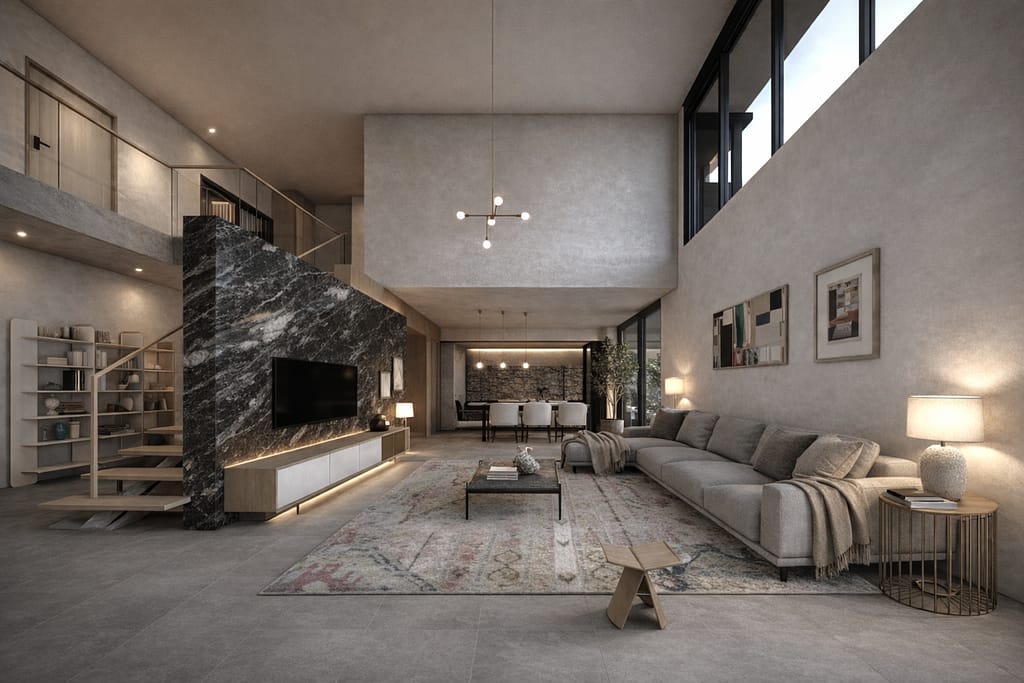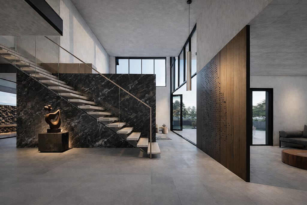 The house is organised around a compact east-facing garden that captures the soft morning light and frames seasonal changes throughout the year. Although modest in scale, the garden extends the interior living spaces and strengthens the connection between the house and nature.