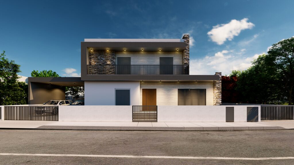 A broad walkway extends from the street to the entrance of the building. Board-formed concrete, clear-grade wood, poured terrazzo flooring, and wide minimal windows make up the high-quality material palette of the two structures.